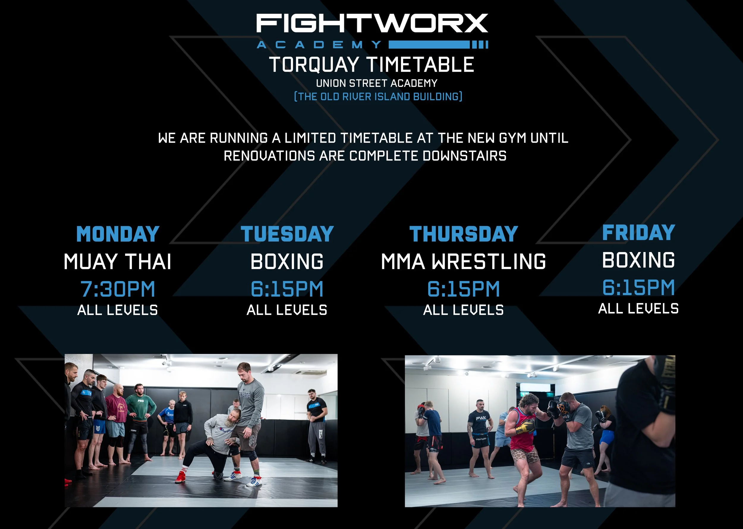 whilst renovations are completed on the new torquay academy, all classes will remain at the existing market street academy, with the exception of a few, new additional classes which are held at the new gym on union street (old river island building)